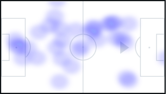Su labor ha sido clave para dar equilibrio al equipo. En los últimos dos partidos ha recuperado 7 balones, los mismos que Luismi y más que Manu Molina, y no ha tenido ninguna pérdida. Además, ha tenido una precisión de pase del 96%, solo ha fallado dos pases en 180 minutos, dándole la asistencia a Chupete en su gol contra el Castellón. Por último, como podemos ver en los mapas de calor, su lectura defensiva ha permitido a Dani Sánchez proyectarse con libertad por su banda.