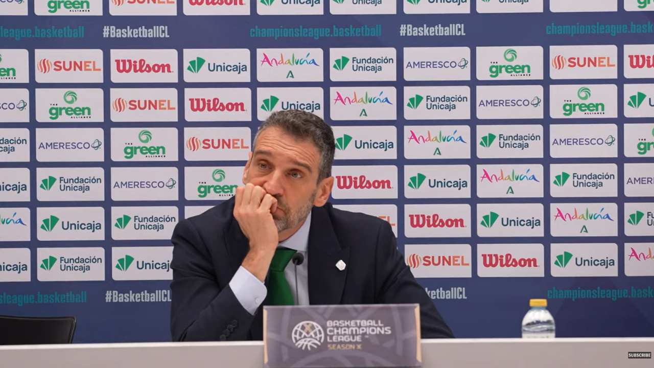 El técnico vitoriano de Unicaja habló en rueda de prensa tras certificar el pleno en la fase de grupos de…