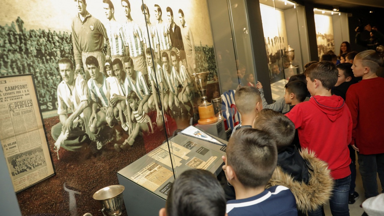 Un paseo por la historia en el cual podemos disfrutar de objetos datados en los años 20, como trofeos de la época, o la camiseta de Luis Pellicer, de los años 60. O algo más actuales y con gran carga emocional para el Club, como las botas de Antonio Benítez.