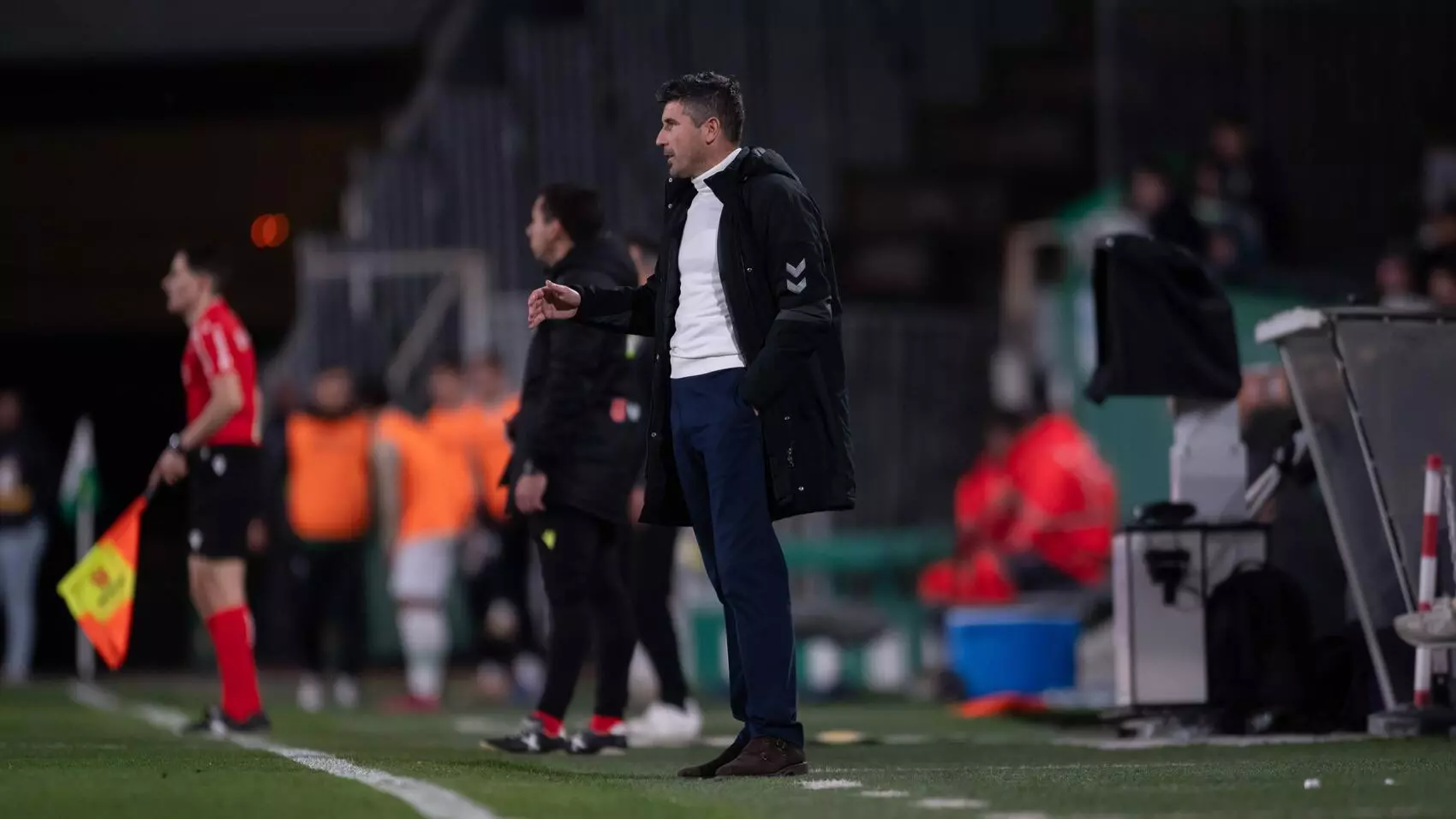 Posibles rotaciones: «Hay que guardar sorpresas, quien quiera verlo que venga al calentamiento. Los apercibidos se van acumulando pero tenemos la tranquilidad de los posibles sustitutos, si tú subes el telón el domingo ves a 11, piensas que lo están haciendo bien. Alfonso, David, Einar, y si bajas el telón y ves de lunes a sábado os sorprendería los que están entrenando, viendo eso estaríais tranquilo. Ves entrenar a Montero, a Eneko, a Juanpe o a Carlos y ves el gran nivel de los titulares. Estamos muy tranquilos.»